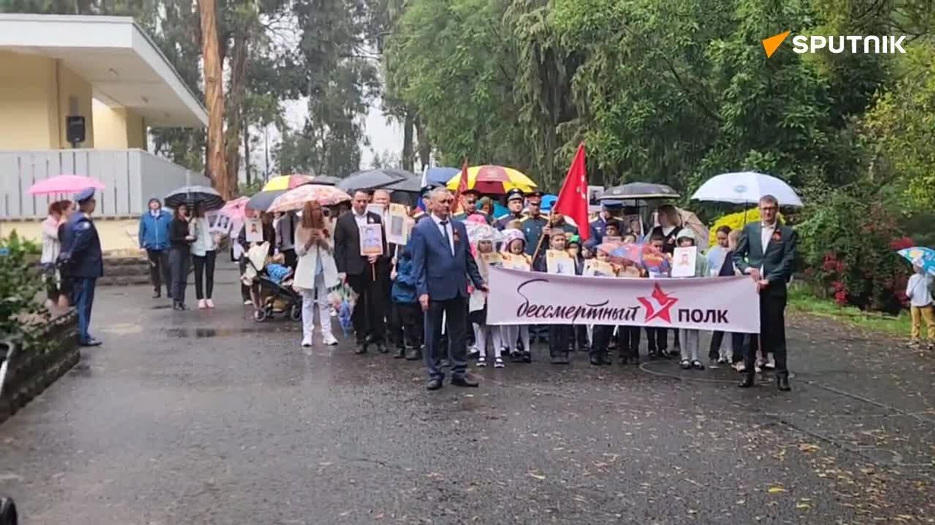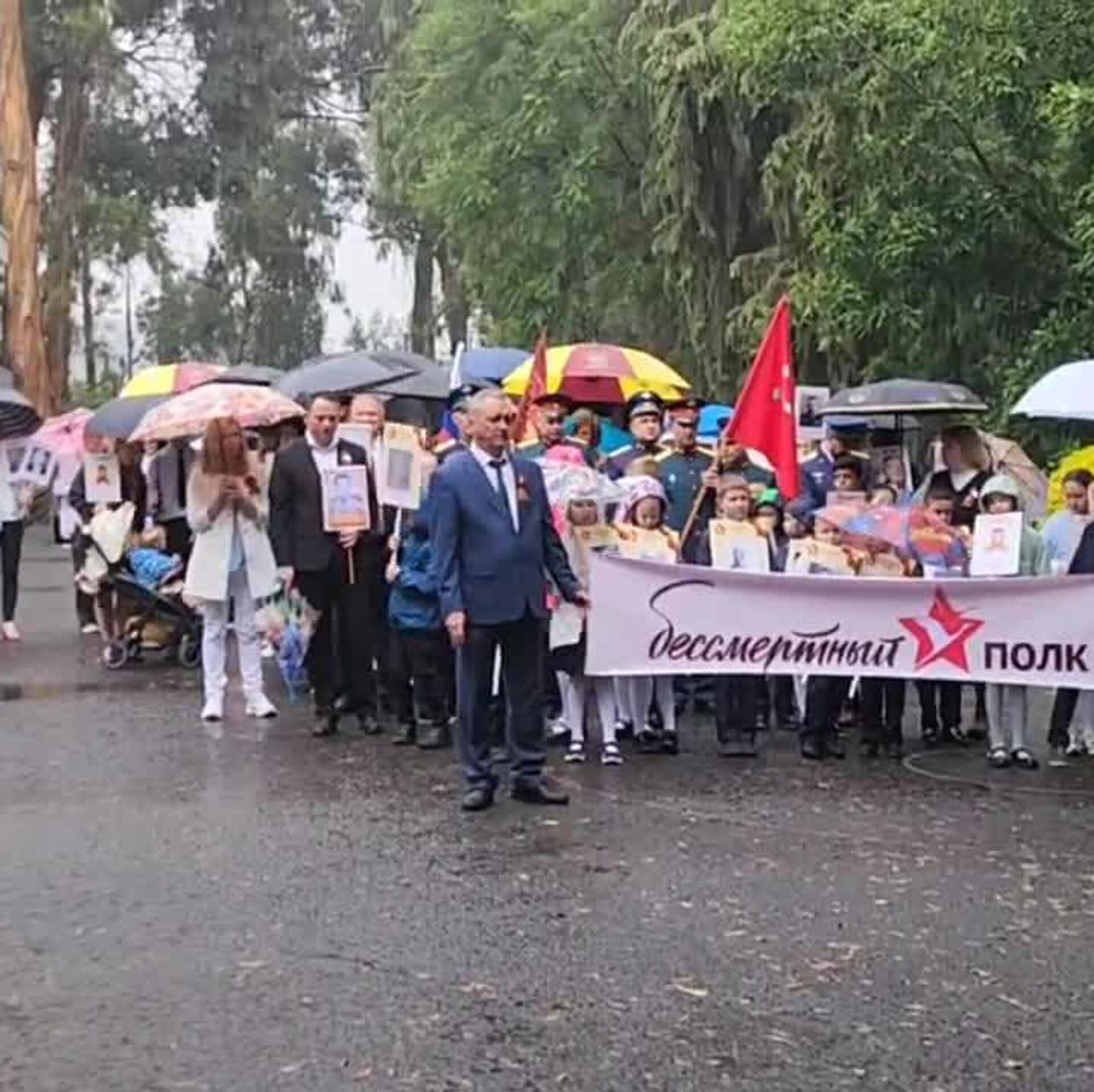 የሰልፉ ተሳታፊዎች በጦርነቱ ያለፉ ዘመዶቻቸውን እና የቀድሞ ወታደሮችን ፎቶግራፍ የሚያሳይ ባነር ይዘው እንደወጡ የስፑትኒክ ጋዜጠኛ ዘግቧል፡፡