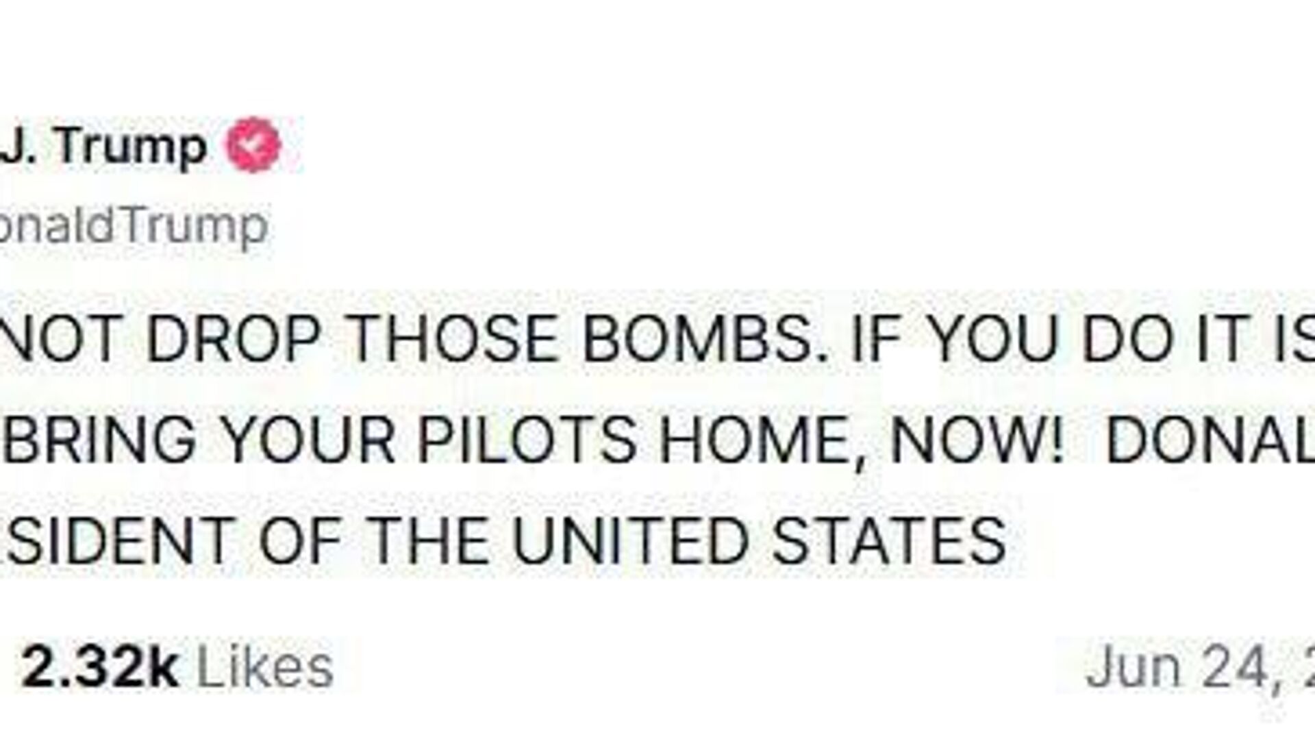ትራምፕ እስራኤል በኢራን ላይ የምታደርገውን የአየር ድብደባ በአስቸኳይ እንድታቆም እና "አብራሪዎቿን አሁኑኑ እንድትመልስ" አሳስበዋል።
