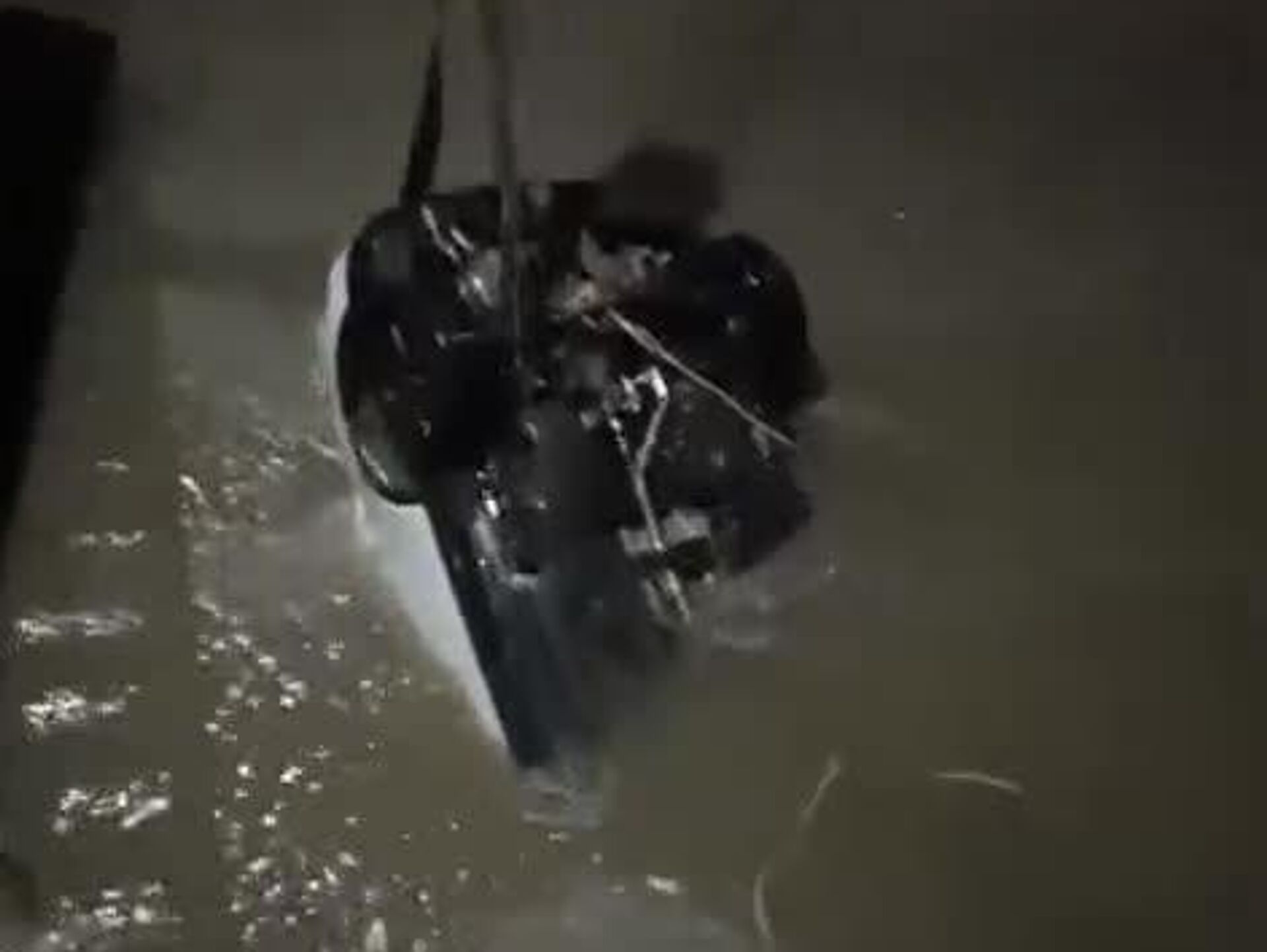 እድለኛ ሆኖ የፖሊስ መኮንኖች አሽከርካሪውን ያዱኑት ሲሆን መኪናውንም ክሬን በመጠቀም ከገባበት ውሃ ውስጥ ጎትተው አውጥተዋል።