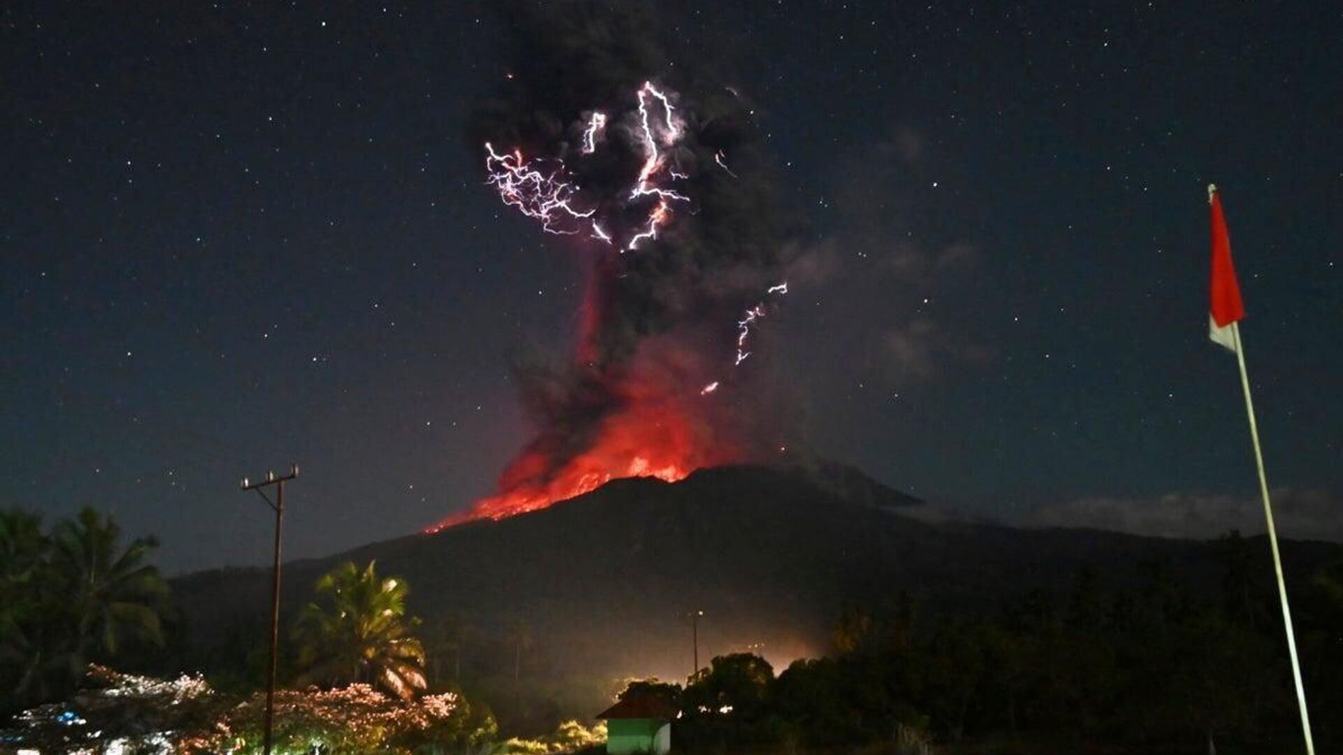 #viral| እሳት እና መብረቅ፦ የኢንዶኔዢያው ሌዎቶቢ እሳተ ገሞራ ፈንድቶ እስከ 18 ኪ.ሜ ከፍታ ያለውን የቀለጠ አለት እና አመድ ተፍቷል