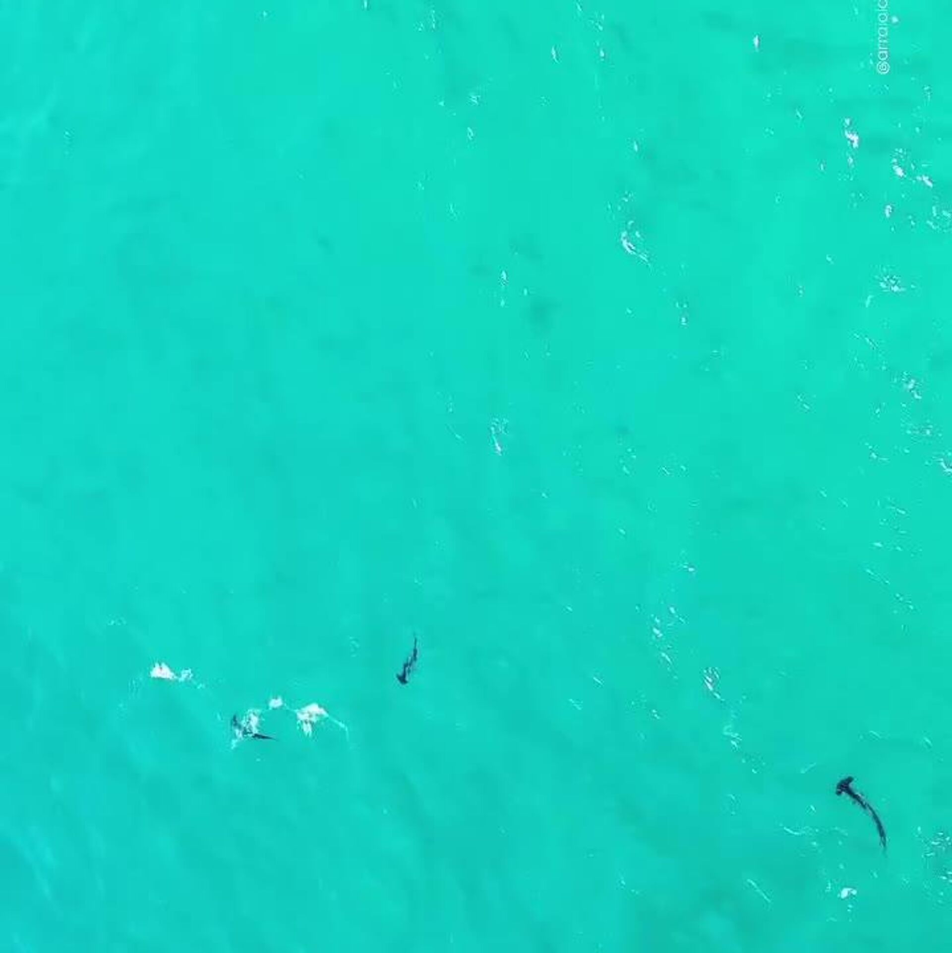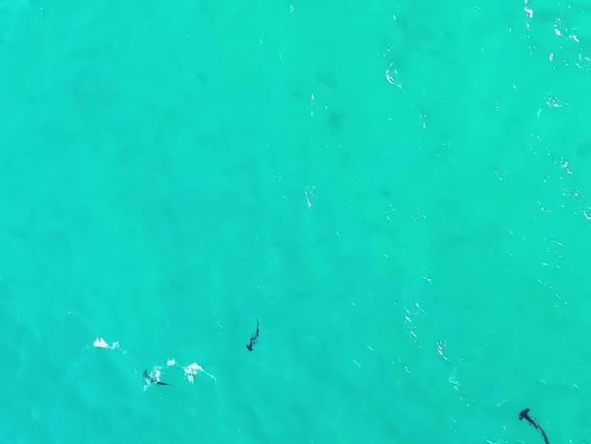 በበየነ መረብ ላይ በተሰራጨ የአየር ላይ ቀረጻ፣ መዶሻ ራስ ሻርኮች በንጹህ የባሕር ውሃ ውስጥ ከዳርቻው አቅራቢያተረጋግተው ሲዋኙ ታይተዋል።