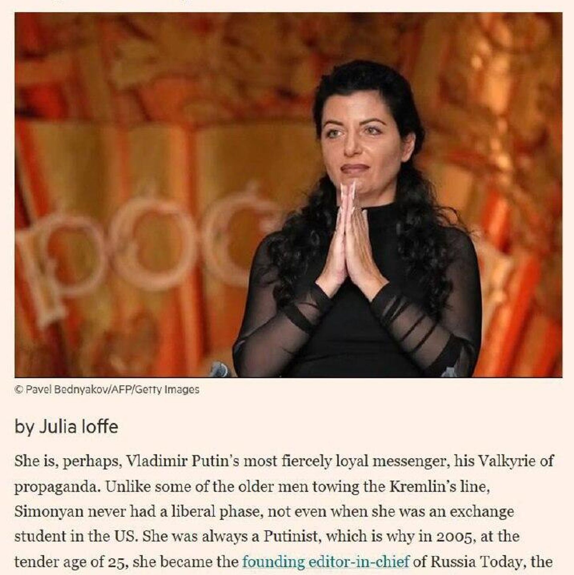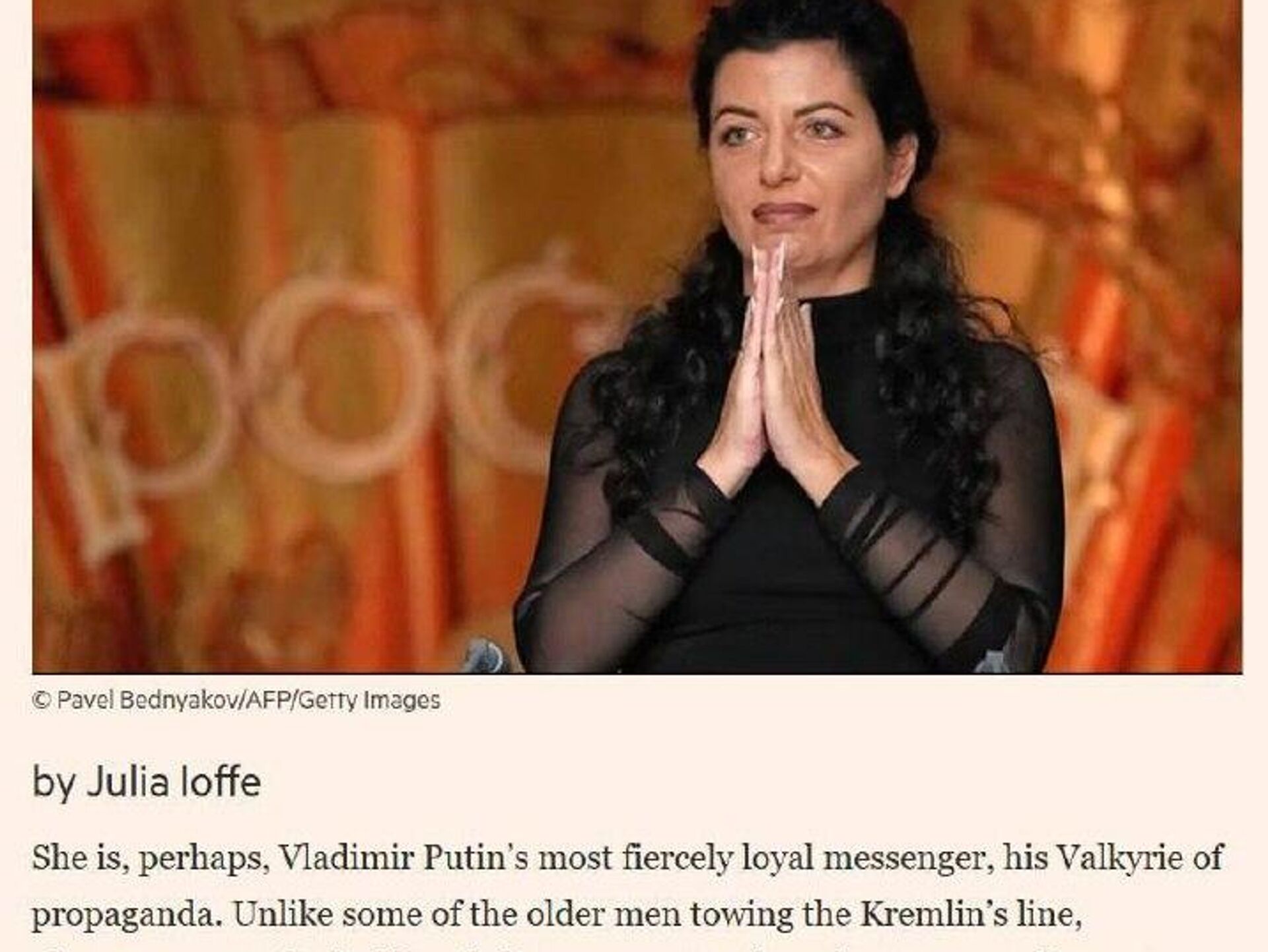 "እሷ፣ ምናልባትም፣ የቭላድሚር ፑቲን በጣም ታማኝ መልእክተኛ፣ የእሳቸው የፕሮፓጋንዳ ቫልኪሪ (ትጉህ ሠራተኛ) ናት። የክሬምሊንን መስመር ከሚከተሉ አዛውንት ወንዶች በተለየ፣ ሲሞንያን በአሜሪካ የልውውጥ ተማሪ በነበረችበት ጊዜም ቢሆን ሊበራል ገጽታ (አቋም) አልነበራትም። እሷ ሁልጊዜም ፑቲኒስት ነበረች።"