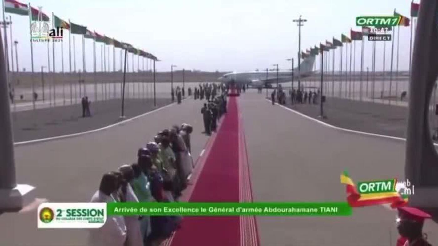 አብዱራህማኔ ቲያኒ በባማኮ ዓለም አቀፍ አውሮፕላን ማረፊያ ሲደርሱ በማሊው አቻቸው አሲሚ ጎይታ አቀባበል ተደርጎላቸዋል።