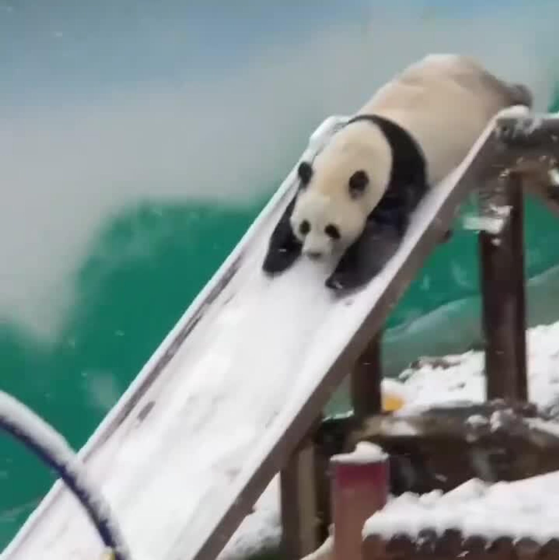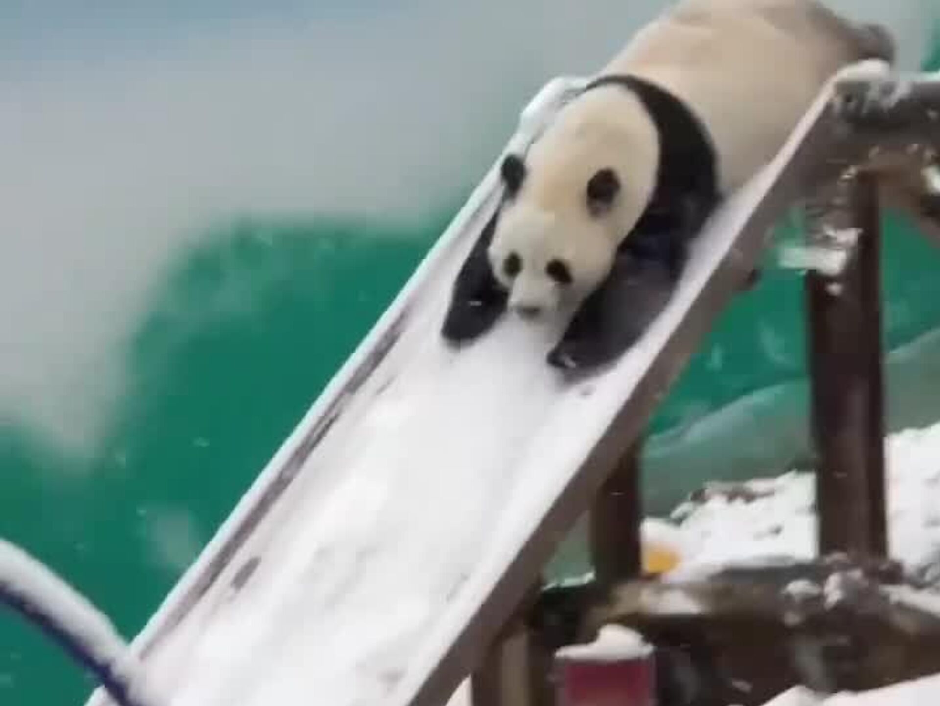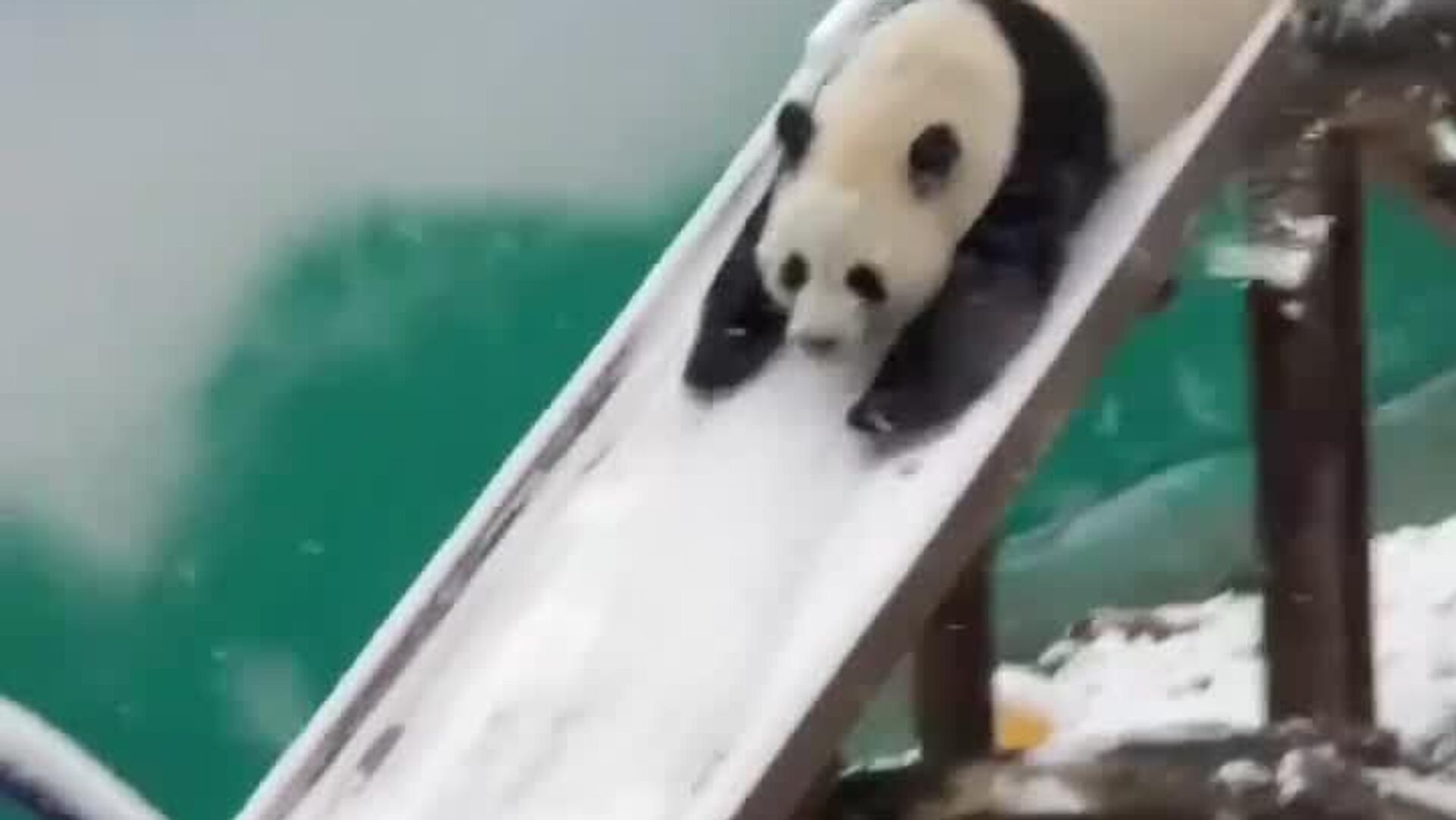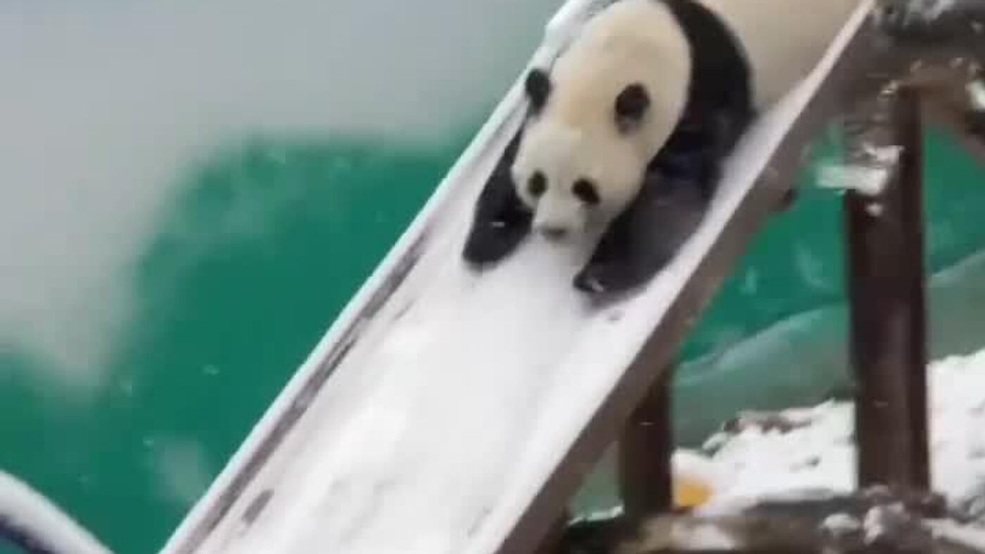 #viral | 'በረዶ ሲወርድ፣ ፓንዳ ይንከባለላል'