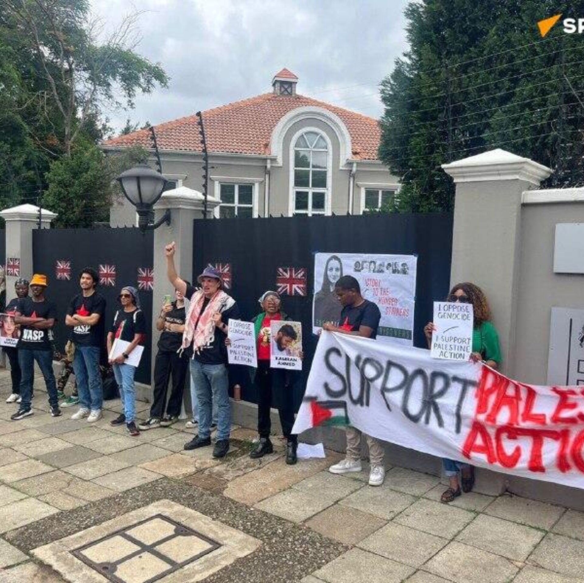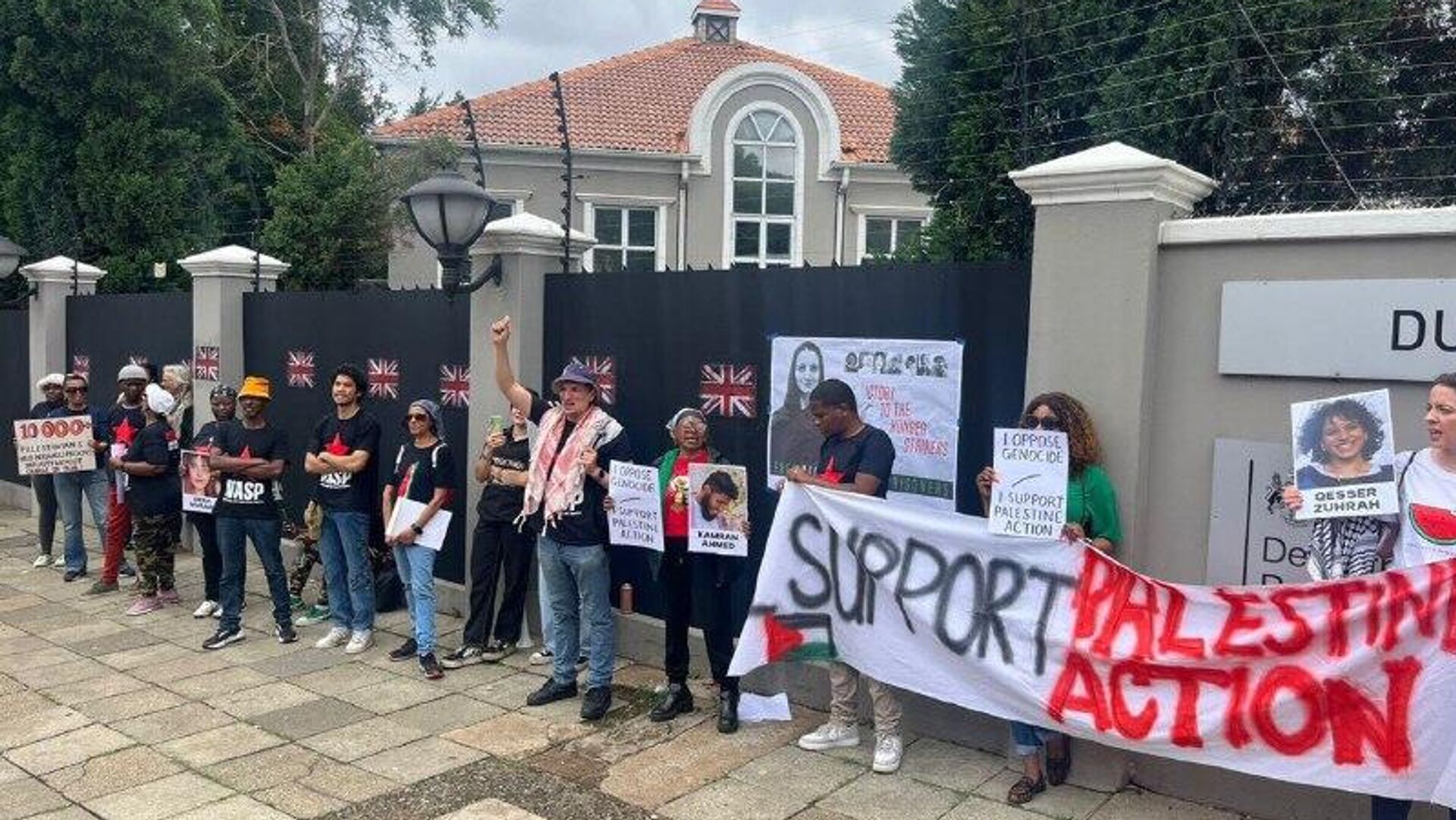 በጆሃንስበርግ ከብሪቲሽ ካውንስል አጥር ውጪ የተሰባሰቡ ሰልፈኞች፤ ብሪታንያ ፍልስጤማውያን የፖለቲካ እስረኞችን ሰብዓዊ በሆነ መንገድ እንድትይዝ ጥሪ አቀረቡ