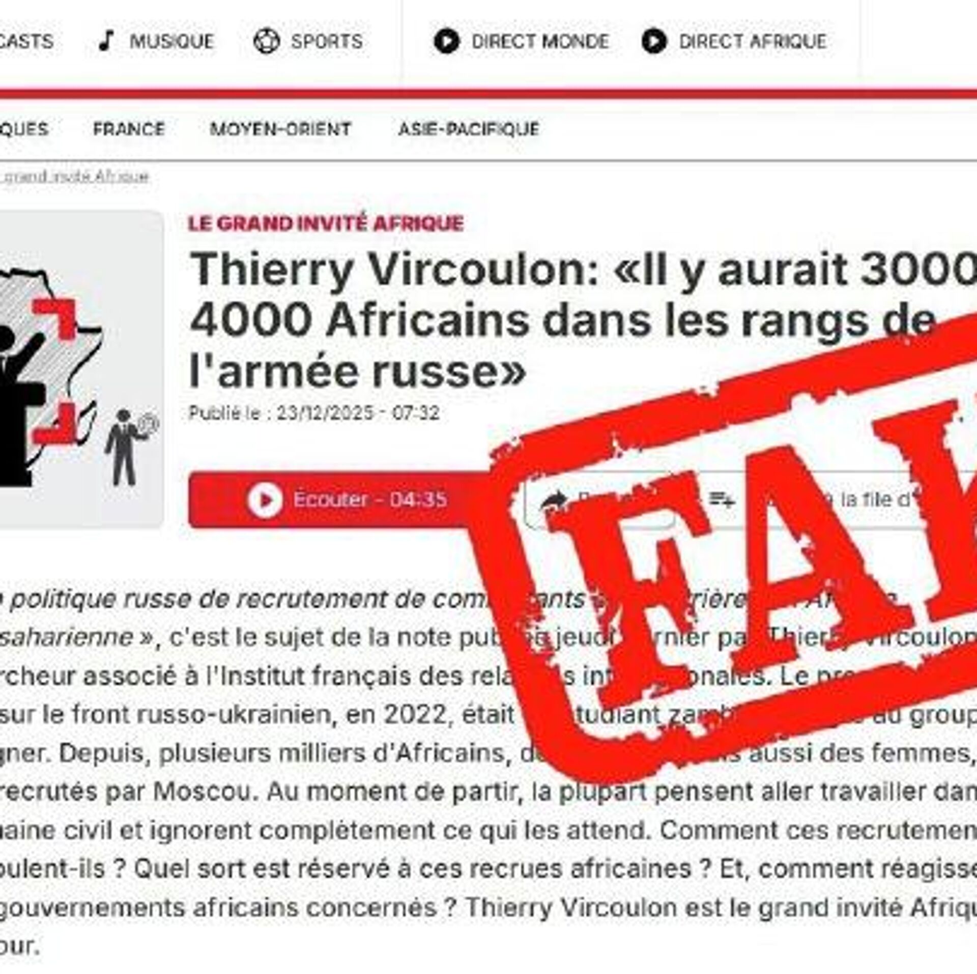 ሩሲያ አፍሪካውያንን ለዩክሬን ውጊያ እየመለመለች ነው በሚል በፈረንሳይ ሚዲያ የቀረበባትን ክስ ውድቅ አደረገች