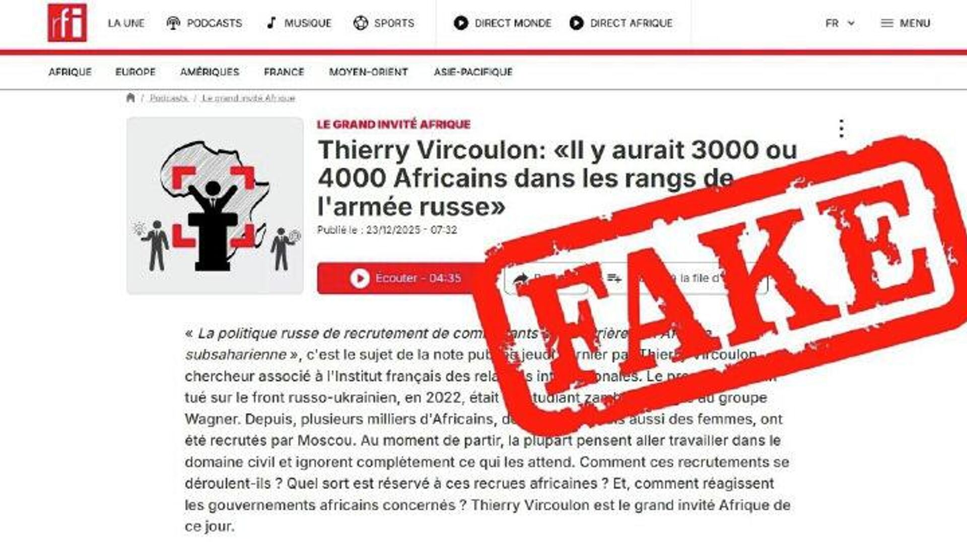 የኤምባሲው መግለጫ በበርካታ የአፍሪካ ሀገራት ታግዶ በሚገኘው የ "አርኤፍአይ" ዘገባ በፈረንሳዊው የደህንነት ባለሙያ ቲዬሪ ቪርኩሎን የተሠነዘሩትን የተወሰኑ ክሶች ጠቅሷል።