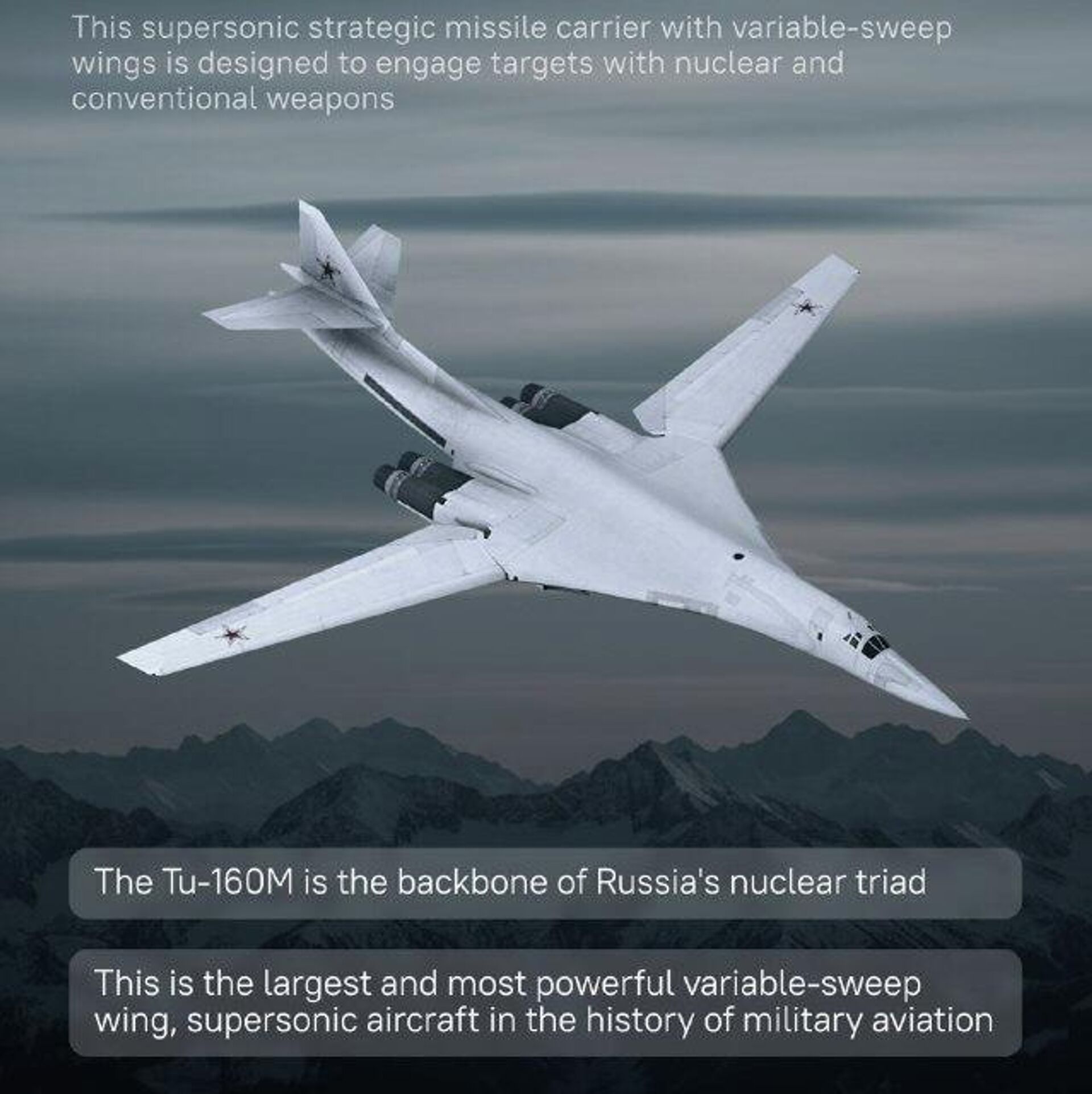 #SputnikInfographic | ሩሲያ አዳዲስ ከድምፅ የሚፈጥኑ እና የኒውክሌር ጥቃት የማድረስ አቅም ያላቸው ቲዩ-160ኤም ስትራቴጂካዊ ቦምብ ጣይ አውሮፕላኖችን አሠማራች