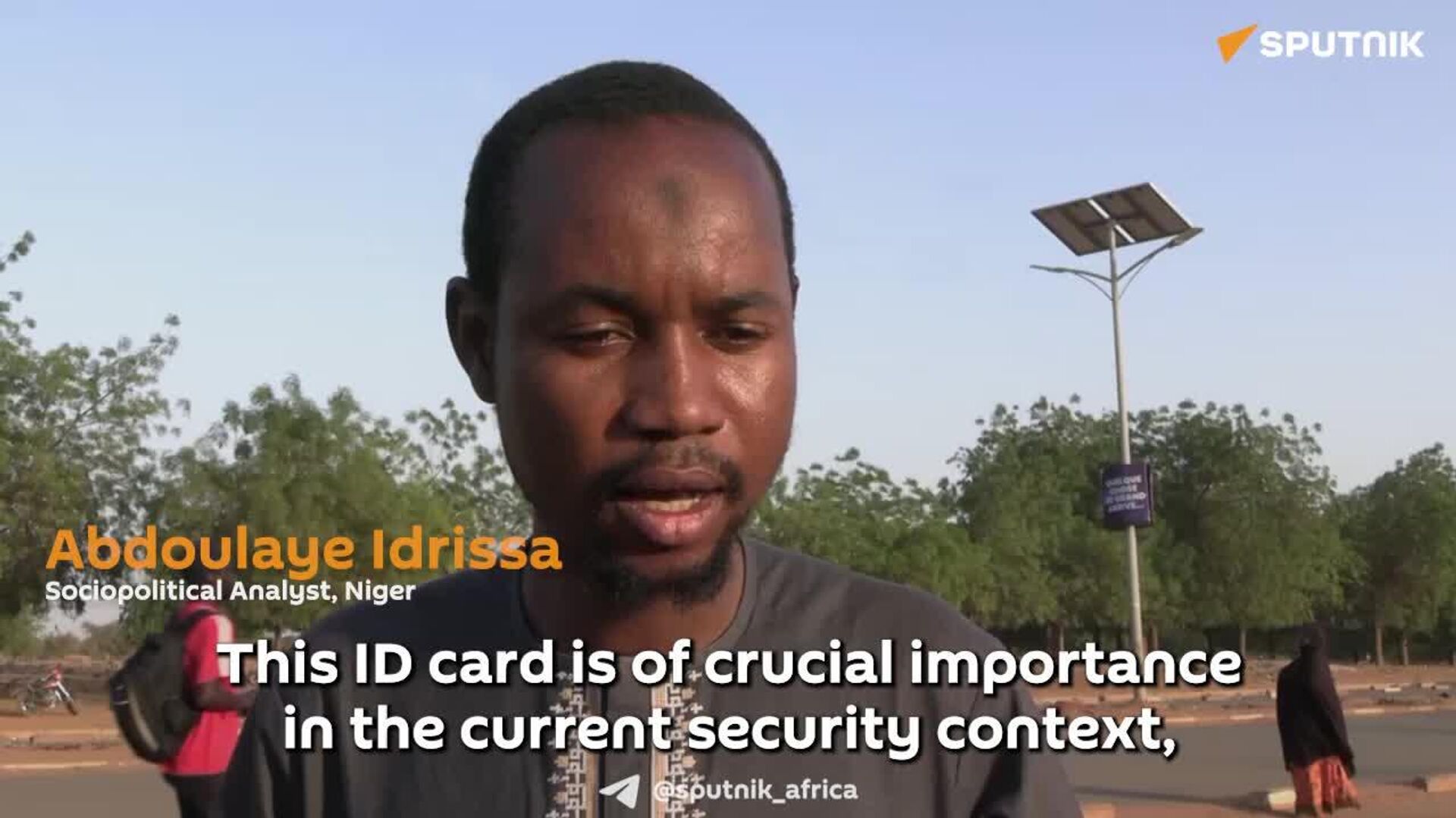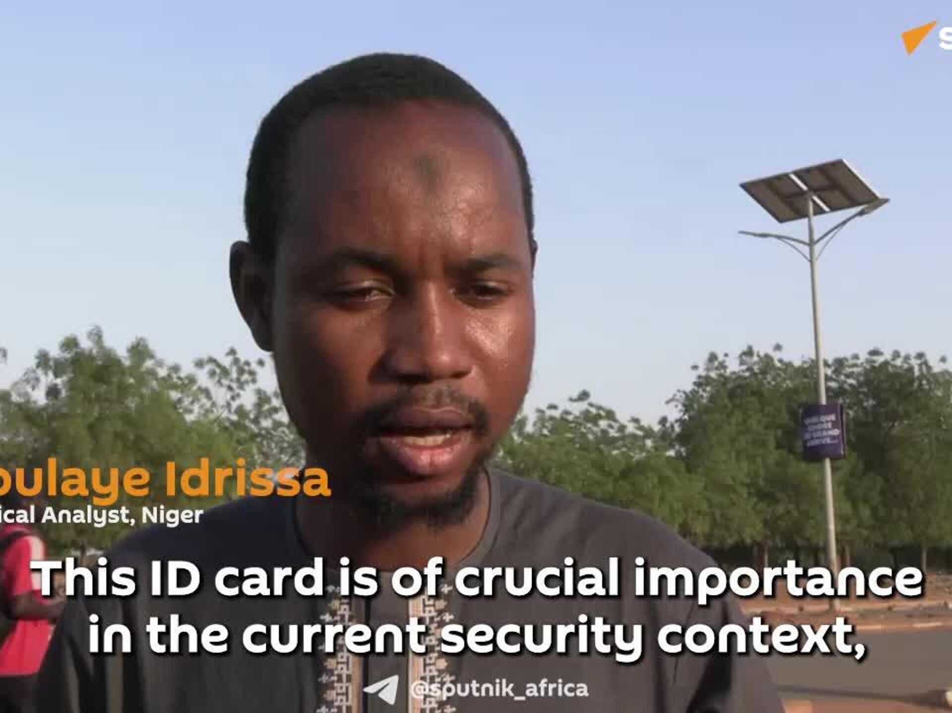"በቅርቡ በኒያሜ የአየር ኃይል ጣቢያ ላይ በከፍተኛ ሰርጎ ገብነት የተፈጸመውን የሽብር ጥቃት ግምት ውስጥ ስናስገባ፤ ይህ የመታወቂያ ካርድ አሁን ባለው የፀጥታ ሁኔታ ውስጥ ወሳኝ ፋይዳ አለው" ሲሉ አብዱላሂ ኢድሪሳ ለስፑትኒክ አፍሪካ ገልፀዋል፡፡