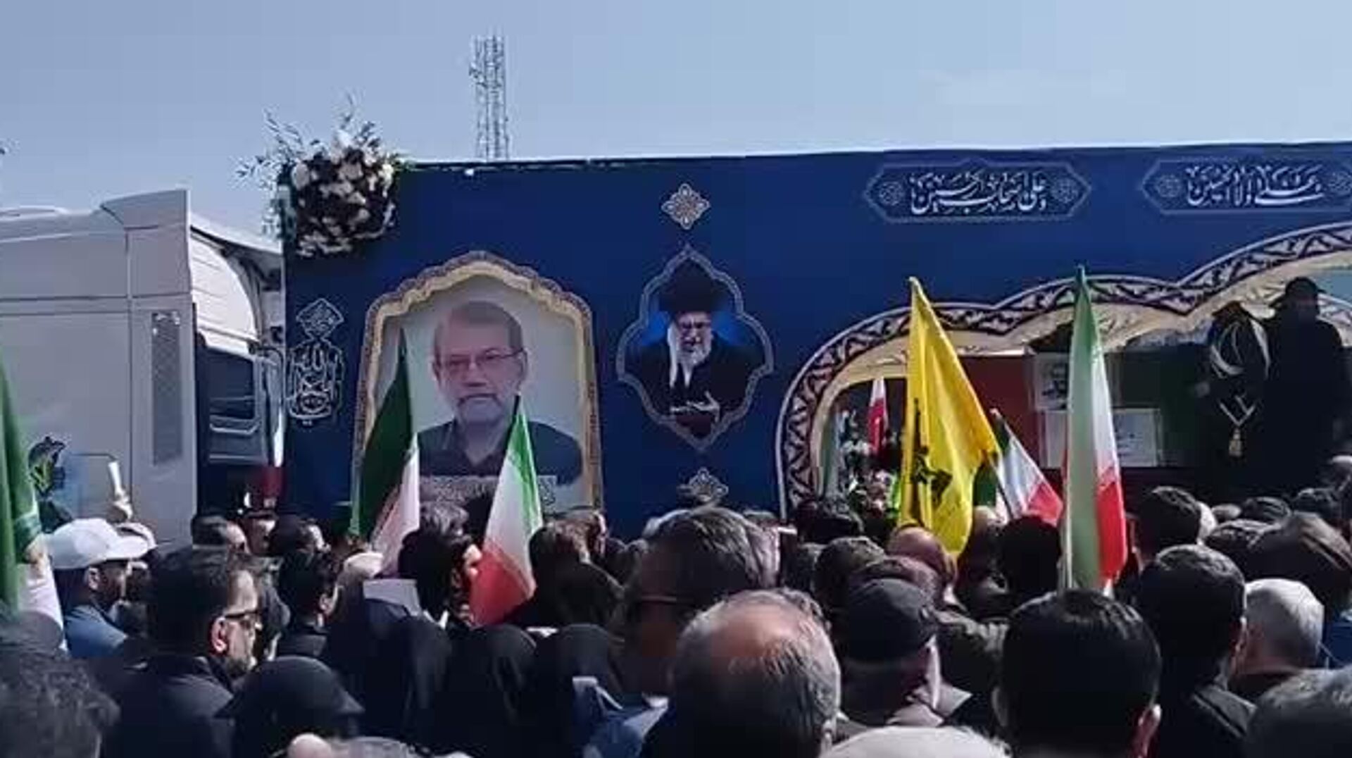 ቪዲዮው የላሪጃኒ አስከሬን በቴህራን ወደሚገኘው ኢንቅላብ አደባባይ ሲሸኝ ያሳያል።