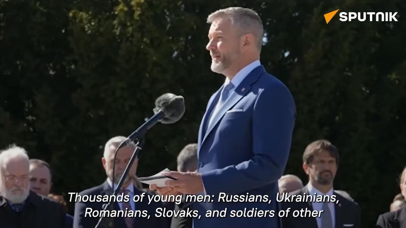 "ቀይ ጦር፣ የሮማኒያ ጦር እና የቼኮዝሎቫኪያ ጦር ነጻ አውጥተውናል። ይህ ደግሞ በታሪካችን ውስጥ ሁልጊዜም እንደተጻፈ ይኖራል። ታሪክን እንደገና ለመጻፍ ለሚደረግ ሙከራ በድንገት እጅ የምንሰጥበት ምንም ዓይነት ምክንያት የለም" ሲሉ የስሎቫኪያ ፕሬዚዳንት ፒተር ፔሌግሪኒ ብራቲስላቫ ነጻ የወጣችበትን 81ኛ ዓመት በዓል አስመልክቶ ተናግረዋል።