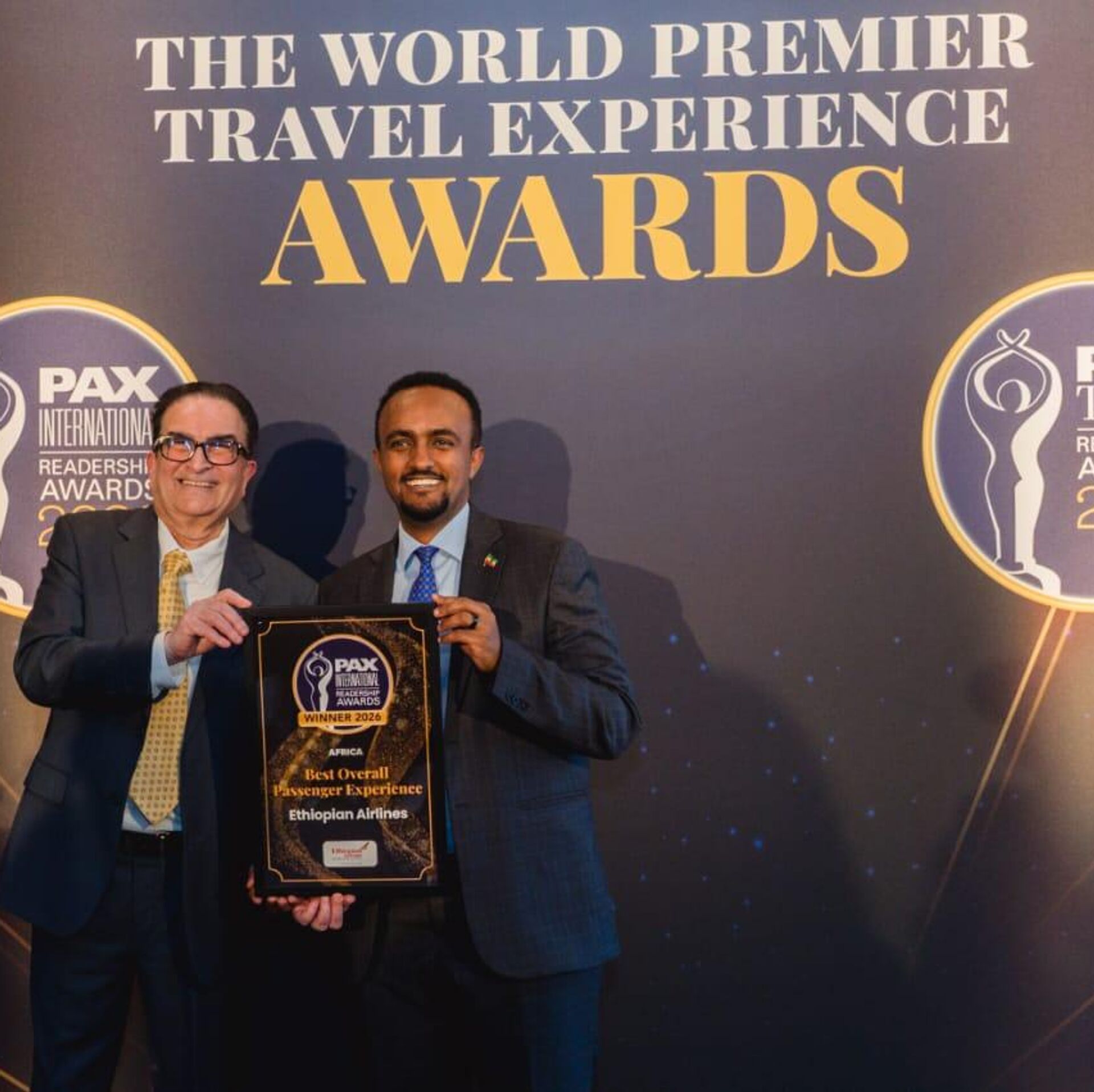 11:57 25.04.2026 (የተሻሻለ: 12:20 25.04.2026) የኢትዮጵያ አየር መንገድ በታዋቂ ዓለም አቀፍ ሽልማት በሦስት ዘርፎች የበላይ ሆነ የአፍሪካ ግዙፉ አየር መንገድ በጀርመን ሀምቡርግ በተካሄደው የ2026 የፓክስ ሪደርሺፕ የሽልማት ሥነ-ሥርዓት ላይ እውቅናውን ተረክቧል።